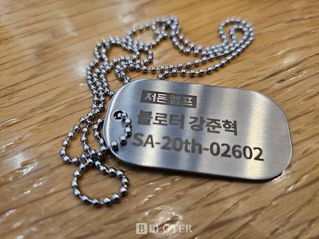 군번줄 만들며 "훈련병 등록 완료"