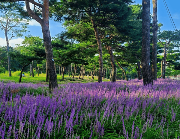 특히 이곳은 바닷바람이 솔솔 불어오는 산책 코스여서 한여름에도 그늘 아래 걷는 맛이 있는데요. 맥문동 특유의 색감과 소나무의 푸르름, 그리고 그 사이로 스며드는 햇살이 어우러져 바다와 꽃, 숲의 감성이 완벽하게 조화를 이룹니다.