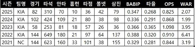 타율 0.268, 10홈런, 36타점, WAR 2.07 (케이비리포트 기준)
