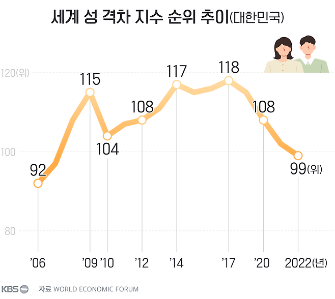 그래서 세계 젠더 격차 지수는 결과만 보고 '한국의 성 평등 수준이 146개국 중 99위 하위권'이라고 판단해선 안 된다는 지적이 나옵니다.