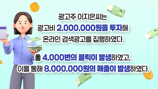 Q. 다음의 검색광고 사례에서 CPC와 ROAS가 올바르게 계산된 것은?
