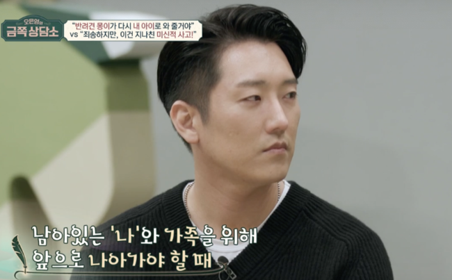 오은영은 반려견이 다시 아이로 돌아오길 바라는 민지영의 마음에 대해 김형균의 생각을 물었다. 김형균은 “7년간 함께 했던 몽이, 그 부분은 동의했다”고 했다.