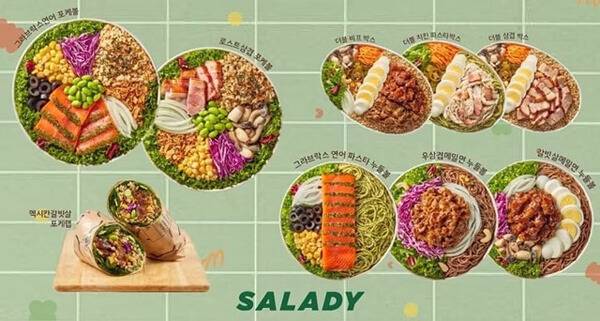 샐러드 프랜차이즈 샐러디는 신메뉴를 대폭 개편했다. 이번 신메뉴는 웰에이징과 저속노화 트렌드에 맞춰 기획됐다. 신제품은 ‘그라브락스 연어 포케볼’, ‘로스트 삼겹 포케볼’, ‘그라브락스 연어 파스타 누들볼’, ‘갈빗살 메밀면 누들볼’, ‘더블 비프 박스’, ‘더블 삼겹 박스’, ‘더블 치킨 파스타 박스’, ‘멕시칸 갈빗살 포케랩’의 8종이다. 참깨소이, 레몬허브소스 등 저당, 저칼로리 소스를 추가해, 소비자들이 취향에 따라 다양한 선택을 할 수 있도록 했다.