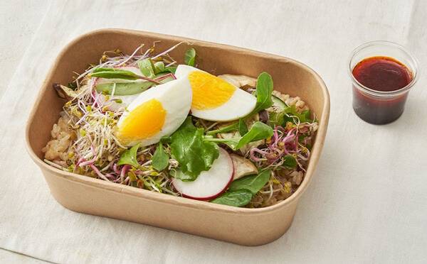 저속노화밥의 주된 특징은 포만감을 높이고 혈당이 오르는 속도를 늦추며, 혈중 콜레스테롤 수치 감소에 도움이 되는 것이다. 이를 위해 사용하는 재료가 바로 현미다. ‘시락 새싹 현미비빔밥’은 국내산 현미로만 지은 밥으로, 용기 그대로 비벼서 취식할 수 있도록 간편한 형태로 나온 제품이다. 밥 위에 모둠새싹과 오이를 비롯해 구운 가지, 새송이버섯 등 산뜻한 채소가 듬뿍 올라가 있다. 가격은 8,980원이다.