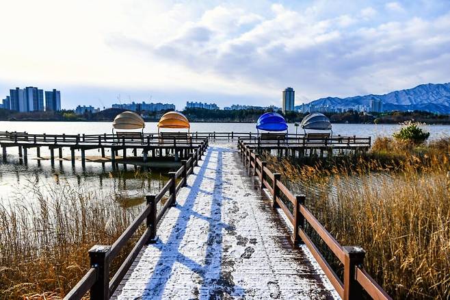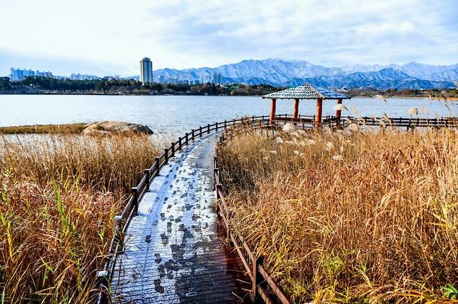 걷기 좋은 산책로를 따라 호수, 벚꽃, 영산홍, 갈대 등 서정적이고 아름다운 풍경이 이어진다.