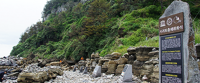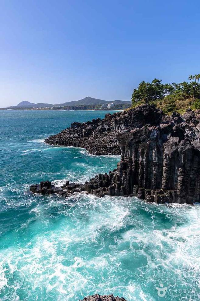 바다로 흐른 용암이 급격히 식으며 형성된 기둥 모양의 절벽입니다.