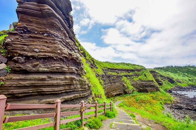 해안 절벽에서 보이는 아름다운 층리 구조가 인상적입니다.