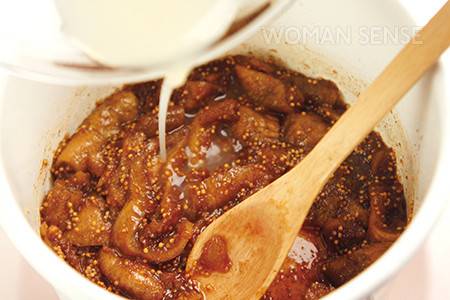 2 냄비에 무화과, 시나몬 가루, 스테비아, 물을 넣고 끓인다.