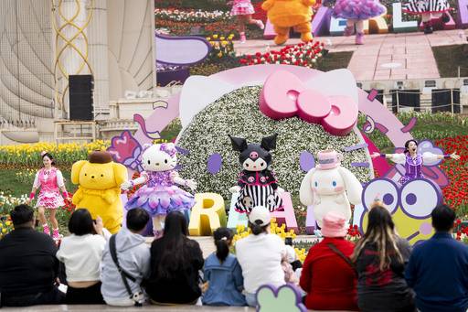 삼성물산 리조트부문이 운영하는 테마파크 에버랜드의 포시즌스가든에서 산리오캐릭터즈 공연이 진행되고 있다. 에버랜드는 산리오캐릭터즈와 협업한 튤립축제에 한 달간 50만명의 상춘객이 방문했다고 23일 밝혔다.