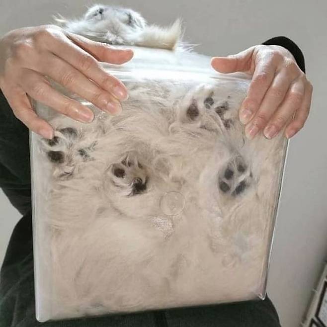 처음에는 투명 아크릴 박스 안에 수북한 새하얀 털을 자랑하는 고양이가 쏙 들어가 있는 줄 알았습니다.