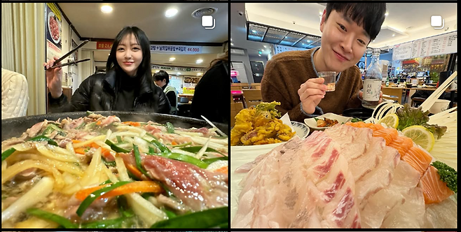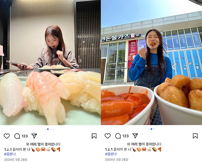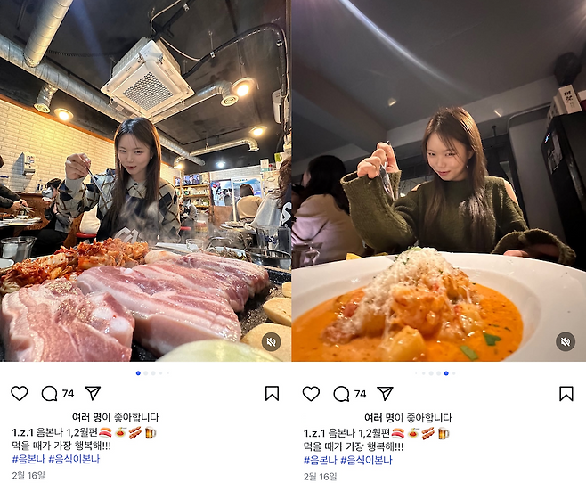 얼짱 각도와 표정은 비슷한데 계절의 변화에 따라 장소와 복장도 바뀌고 그리고 무엇보다 메뉴가 매번 다르니 보는 재미가 있다고!