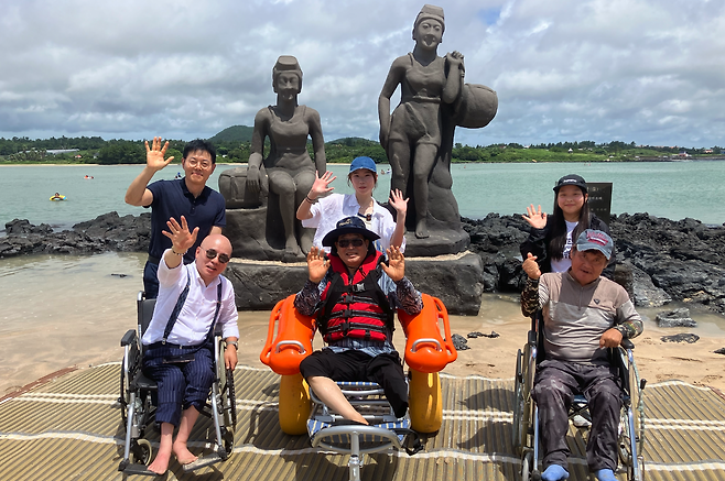 동부종합사회복지관의 김민석 복지사는 ‘표선해수욕장 무장애 관광 프로젝트’를 진행한 사례를 발표했습니다. 동부종합사회복지관과 표선고등학교 인권동아리 <이끼> 학생들은 해수욕장에서 교통약자의 이동권에 주목했습니다. ‘해수욕장 휠체어 진입매트, 장애인 패들보드, 장애인도 이용이 가능한 인생네컷 부스’ 등 장애인의 해수욕장 이용을 위한 아이디어를 기획하고 직접 실행했는데요. 그 결과 무장애관광 프로그램에는 147명의 인원이 참여했으며, 국내외 10개 언론사에 취재 및 보도되기도 했습니다.