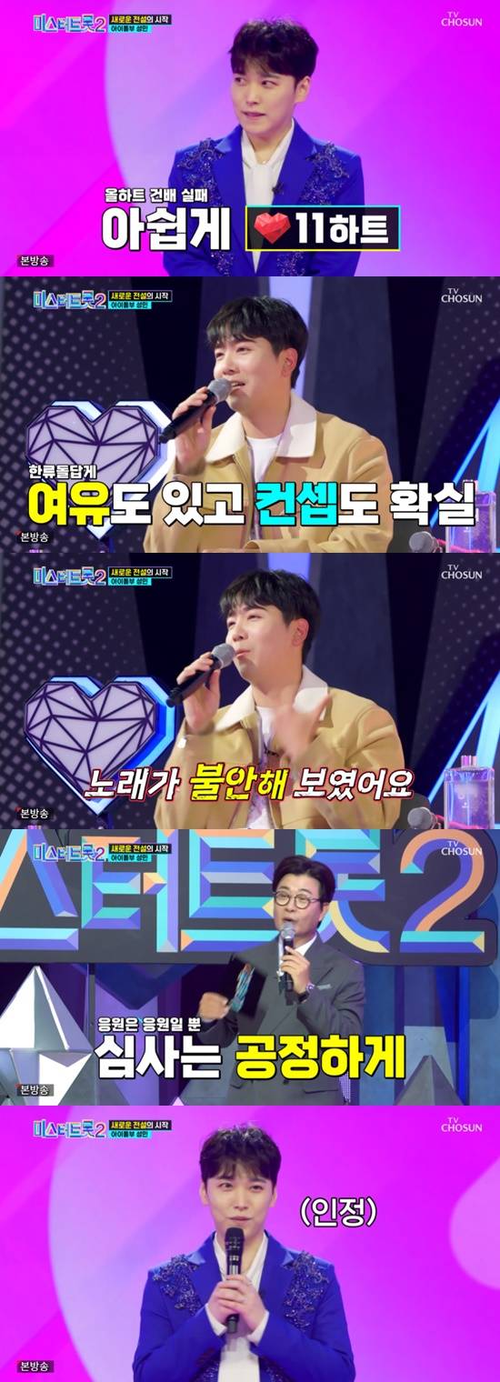 성민은 끼 넘치는 무대로 저력을 보였지만 11 하트에 그쳐 아쉬움을 안겼다. 진성은 "무대가 예쁘고 귀엽다. 짜임새와 격이 있다"고 평가했다.