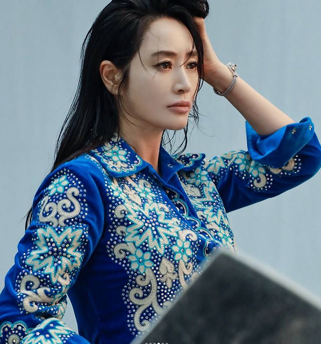 김혜수 씨는 화려한 패턴이 수놓인 벨벳 소재 의상을 완벽하게 소화해냈습니다.