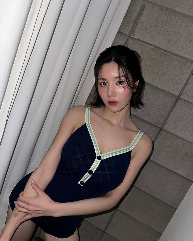 세 번째는 네이비 니트 수영복 스타일이다. 체크 패턴 조직과 V컷 디테일, 그리고 민트색 스트랩으로 포인트를 준 이 수영복은 우아하면서도 강렬하다. 일반적인 비치웨어와는 결이 다른 독창적인 아이템으로, 물놀이와 동시에 인생샷까지 챙기고 싶은 이들에게 추천하고 싶다.