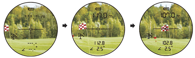 거리측정기 조준선을 깃대 쪽으로 이동합니다.