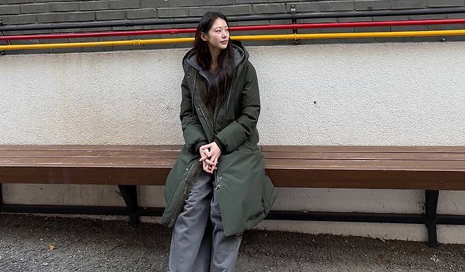 사진 속 공승연은 카키색 롱패딩을 입고 포근한 분위기를 자아냈습니다. 롱패딩 특유의 따뜻함은 물론, 자연스러운 실루엣으로 캐주얼하면서도 세련된 느낌을 더했습니다. 여기에 그레이 와이드 팬츠를 매치해 편안한 스타일을 완성했으며, 블랙 플랫슈즈로 마무리해 심플한 멋을 강조했습니다.