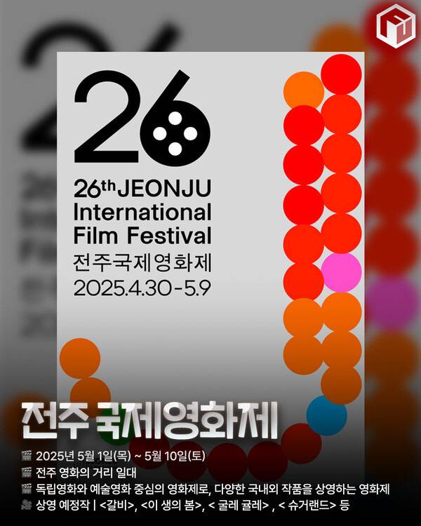 올해로 26회를 맞이한 2025 전주국제영화제는 독립영화와 예술영화 중심의 대표적인 영화 축제입니다. 아름답고 고즈넉한 전주의 구도심 일대를 배경으로 펼쳐지는 이 영화제는 5월 따스한 봄 날 평소 만나볼 수 없던 실험적이고 창의적인 영화들을 만나볼 수 있는데요.