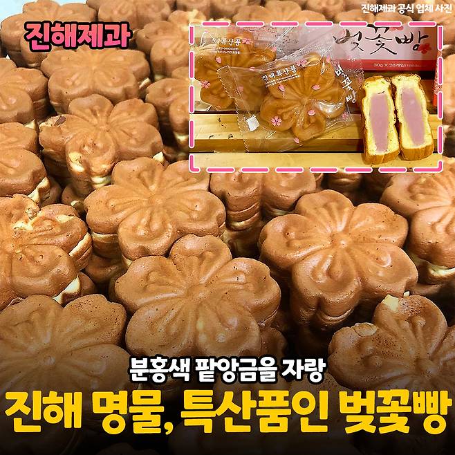 진해하면 떠오르는 게 군항제이고 군항제 하면 또 벚꽃 아니겠어요! 진해제과에선 진해 특산품인 벚꽃빵을 판매하고 있는데 진해의 명물이자 꾸준한 사랑을 받아 백년가게로 선정된 곳입니다.