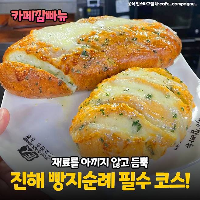 카페깜빠뉴는 경남 제과제빵 최고 장인으로 선정된 이선구 셰프가 운영하는 곳이에요. 2014년도 대통령 표창도 받은 곳이며 진해 빵지순례 필수 코스로도 유명하다고 하는데 재료를 아끼지 않고 듬뿍듬뿍 넣어 사람들이 만족하는 빵집이랍니다.