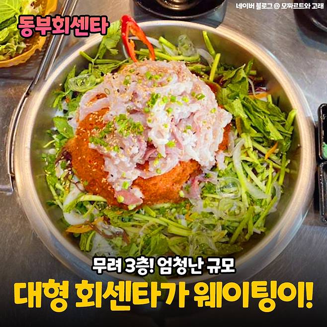진해에 모르는 사람이 없을 정도로 유명한 횟집! 동부회센타는 오프전부터 웨이팅이 있고 대기줄도 어마어마해 대기 공간도 따로 있을 정도랍니다. 이곳에 왜 이렇게 유명하냐면 바로 '갓'성비 때문인데요.