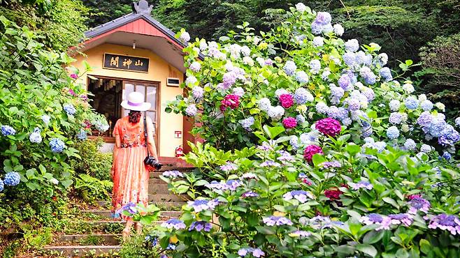 그러나 6월 말부터 7월 초, 이 사찰은 완전히 다른 얼굴을 보여준다. 5,000그루 이상, 30여 종에 달하는 수국이 경내와 주변 산책로를 가득 채우며 방문객을 맞이한다.