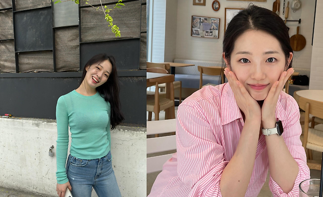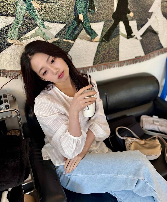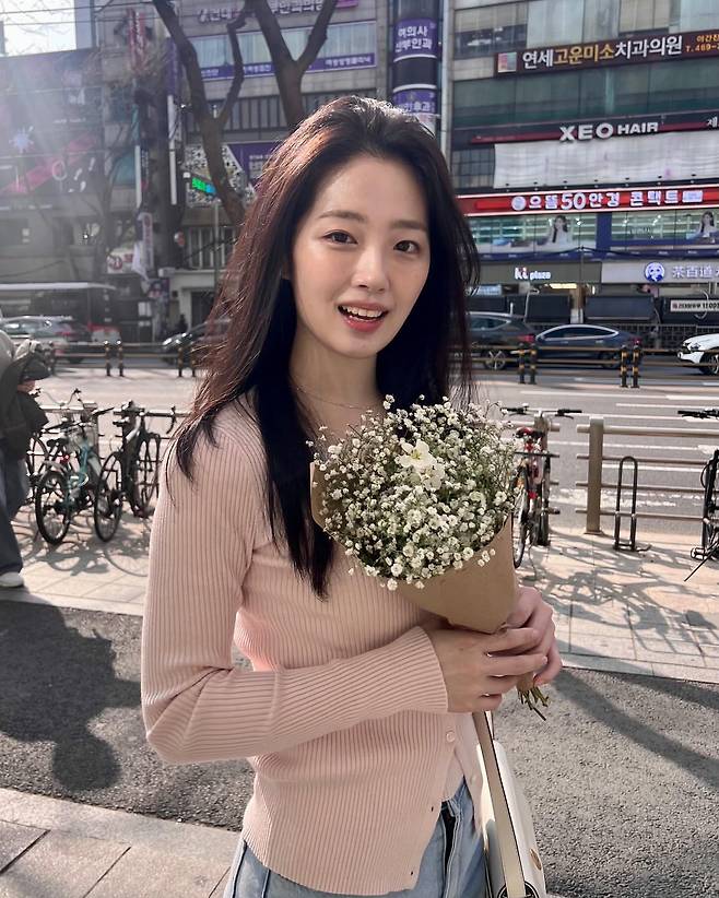 이은재는 베이지 톤의 리브 가디건을 데님 팬츠와 매치해 편안하면서도 세련된 봄 데이트룩을 연출하고 있다. 화사한 꽃다발과 함께 포즈를 취한 모습에서 자연스러운 청순미가 돋보인다. 가디건의 부드러운 실루엣과 데님의 캐주얼함이 조화를 이루며 일상적이면서도 로맨틱한 분위기를 완성했다.