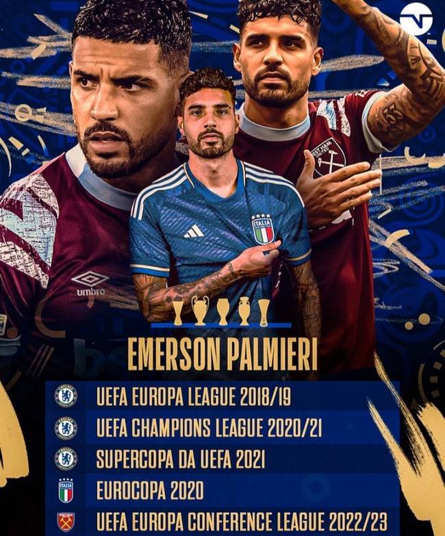 에메르송은 2019년엔 UEFA 유로파리그(UEL), 2020년엔 UEFA 유로 2020, 2021년엔 UEFA 챔피언스리그와 UEFA 슈퍼컵, 그리고 올해에 UECL에 우승을 하면서 UEFA 주관 대회에만 5번 우승을 하는 기염을 토했다.