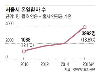 서울 종로 탑골공원 일대 패스트푸드점은 음료 한 잔을 시켜놓고 온종일 진을 치는 노인들로 골머리를 앓고 있다. 이중 한 곳을 찾은 한 노인은 "바깥 더위에 비하면 여긴 천국"이라며 "그나마 돈이 조금이라도 있으니 마실 거라도 시켜놓고 앉아 있는 것"이라고 했다. 최근 서울연구원에서 낸 보고서 '2016년 서울시민의 폭염 경험'에 따르면 고령화 비율이 높은 구(區)는 온열질환으로 병원을 찾은 이도 많았다. 조사에 참여한 도시사회연구실 손창우 박사는 "나이가 들수록 체온 조절 기능이 떨어져 폭염에 특히 취약하며, 심장병 같은 기저질환이 있으면 더 위험하다"고 했다.