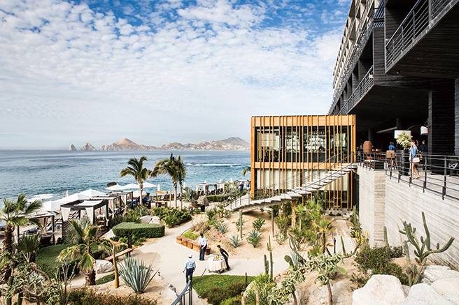 클러버의 흥은 놓치고 싶지 않고 흥청망청한 철부지들로부터 벗어나고 싶은 심정을 감안해 탄생한 것이 더 케이프(The Cape) 호텔이다. 코르테스해를 깊이 끌어안은 바닷가 호텔은 콘크리트와 나무로 지은 건축물로 천편일률적인 리조트 사이에서 존재감을 뽐낸다. 어두운 색의 가죽과 벽면에 걸린 현대미술 작품들이 고급스럽지만 1960년대 캘리포니아의 서핑 클럽 같은 젊은 분위기도 더해졌다. 이곳 레스토랑 만타는 호텔에 묵지 않아도 로스 카보스에 있다면 한 번쯤 들러야 한다. 멕시코 스타 셰프 엔리케 올베이라가 페루의 세비체와 일본의 사시미를 재해석한 지역 해산물 요리를 선보인다. 초콜릿 클램으로 만든 세비체, 아보카도와 와사비가 함께 나오는 사시미 등을 맛보는 경험이 새로웠다. 더 케이프 호텔의 로비 바에서 메스칼(선인장으로 만든 술) 칵테일을 한 잔 마시면 눈앞의 풍경이 영화의 한 장면으로 탈바꿈할 것이다. 코 앞에 보이는 코르테스해와 엘 아르코 바위는 세트장이 되고, 카바나에서 휴식을 취하는 커플과 파도를 타고 내려와 곧장 빌라 스위트로 향하는 서퍼는 영화 속 등장인물처럼 보인다. 마치 위험한 순간이 닥치기 전의 평화를 강조하기 위해 비현실적으로 그려낸 극강의 호사와 휴식의 장면처럼 말이다.