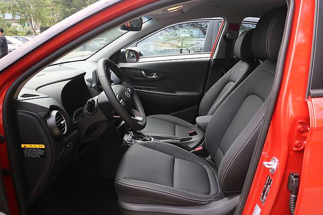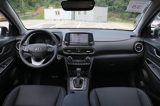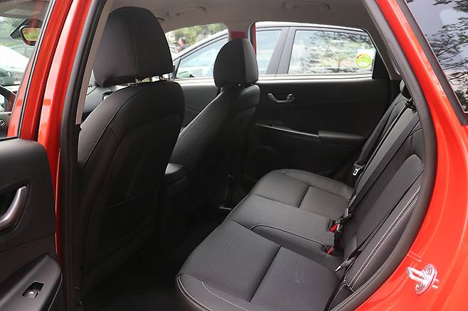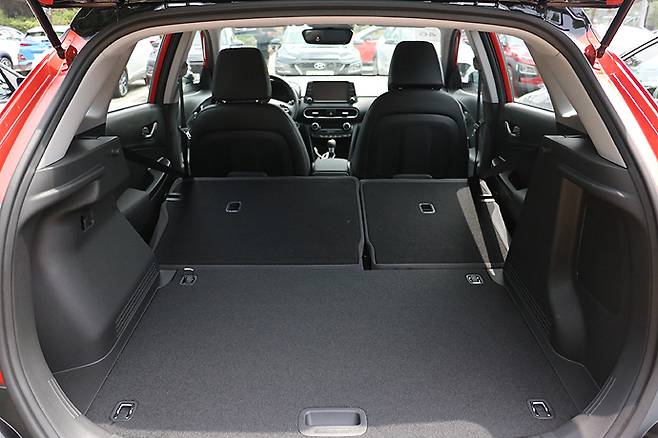 무엇보다 관심이 가는 부분은 실내 공간이다. 넉넉한 실내공간을 소위 뽑아내기로 유명한 현대차가 소형 SUV에서도 실력발휘를 했을지 궁금했다. 국내 소형 SUV 시장에서 가장 많이 판매되고 있는 티볼리와 비교해 보면, 먼저 전장은 코나가 4165mm, 티볼 리가 4195mm로 티볼 리가 30mm 길지만 휠베이스는 두 모델 모두 2600mm로 동일하다. 오히려 전폭은 코나가 5mm 넓지만 전고는 티볼 리가 40mm 높다. 코나의 경우 기존의 소형 SUV들 보다 낮은 전고를 통해 스포티함을 강조하고 있다. 하지만, 낮아진 전고만큼 실내공간도 줄어들 수 밖에 없다. 실제 공간의 크기를 수치상으로 비교하긴 어렵지만 체감할 수 있는 공간감은 티볼리보다 오히려 여유있는 모습을 보인다.