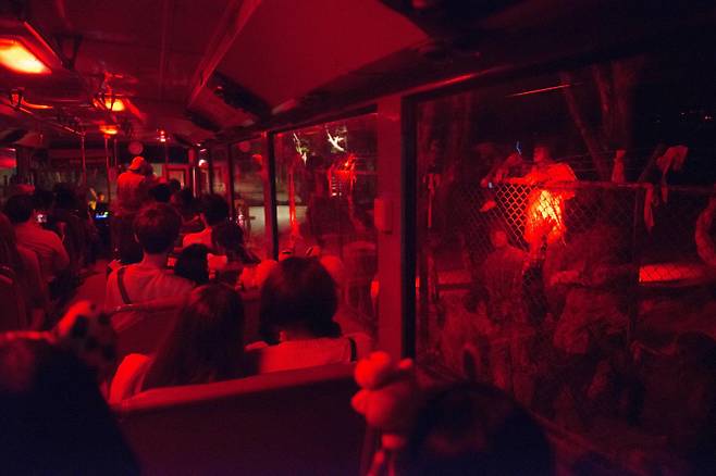 지난 18일 오후 8시 에버랜드 ‘블러드 시티’, 본부에서 파견된 특별조사팀을 따라 사파리행 버스를 탔다. 어두컴컴한 밤에 사자와 호랑이, 곰 등 맹수가 살던 사파리에 들어서니 제법 으스스했다. 우리로 미처 들어가지 못한 사자가 어슬렁거릴 수 있단 설명도 긴장감을 더했다.