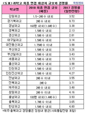 첫째는 1단계 경쟁률이 높거나 높아질 것으로 예상되는 과학고에 지원할 경우다. 2단계 최종 면접 대상자 규모는 학교에 따라 정원의 1.5~2배수로 정해져 있는 만큼 경쟁률이 올라가면 1단계 통과가 2단계보다 어려워질 수밖에 없다(아래 도표 참조). 보통은 자소서의 영향력이 1단계에서 더 크다는 점을 감안할 때, 높은 경쟁률에서의 자소서 역할에 더욱 주목할 필요가 있다. 일반전형 기준 지난해 경쟁률이 높았던 경기북과고, 한성과고, 인천진산과고 등에 지원하고자 한다면 각별히 더 염두에 둘 부분이다. 올해 중3 학생 수는 지난해보다 크게 줄었지만 자사고 폐지 우려 등의 영향으로 과학고 지원자 비율은 증가가 예상된다.