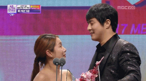 수상 소감을 마친 뒤 기안84는 무대를 내려가려는 박나래를 향해 "기다려봐"라고 말한 뒤 박나래의 이마에 뽀뽀를 했다.