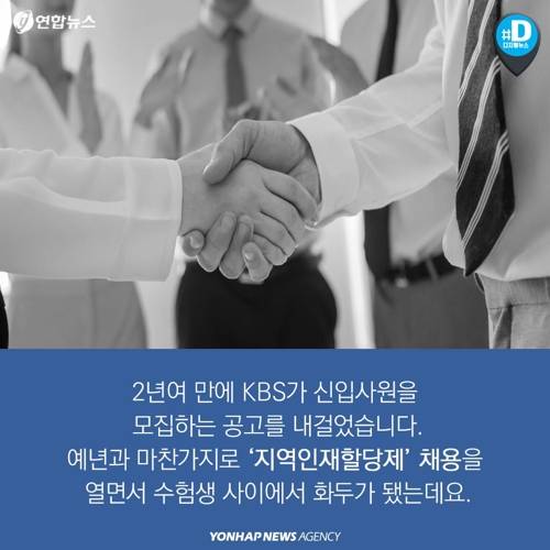 2년여 만에 KBS가 신입사원을 모집하는 공고를 내걸었습니다. 예년과 마찬가지로 '지역인재할당제' 채용을 열면서 수험생 사이에서 화두가 됐는데요.