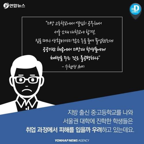 지방 출신 중·고등학교를 나와 서울권 대학에 진학한 학생들은 취업 과정에서 피해를 입을까 우려하고 있는데요.