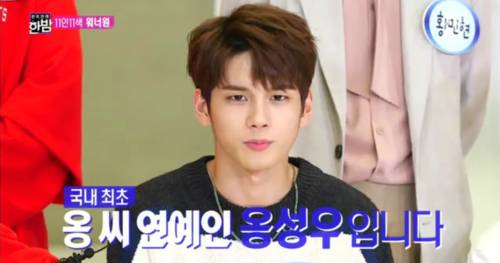 이날 방송에서 옹성우는 자신의 이름을 소개하면서 "국내 최초 '옹'씨 연예입니다"라고 말했다.