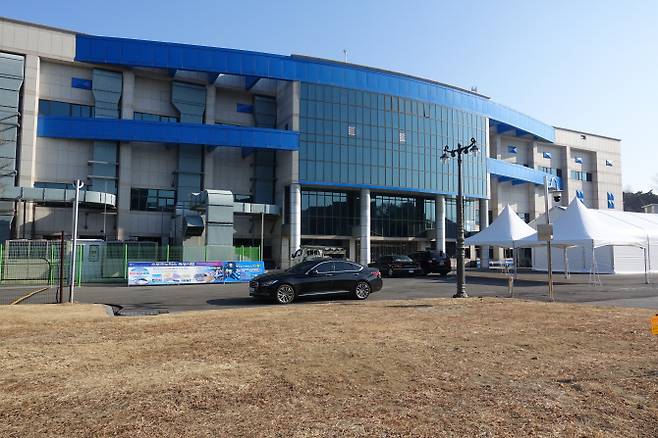 율곡중학교 정류장에서 내려 조금 걸어 올라가자 역사적인 올림픽 경기가 열리는 스피드스케이팅 경기장의 자태가 보인다.