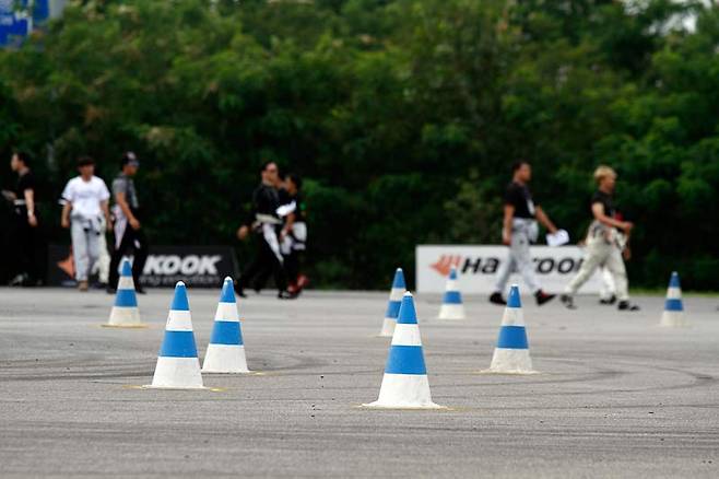 그런데, 대회 코스는 스키 회전 코스 처럼 하나씩 좌우로 더 빼놓은 코스다. 그것도 콘이 2개씩이다. ‘액셀만 사용해서 가속한 뒤 콘을 통과할 무렵 액셀을 떼면서 턱인(Tuck-in·언더스티어 현상이던 차가 가속을 멈추면 차량 무게 중심 이동으로 별안간 안쪽으로 휘어들어가는 현상)을 이용해 콘을 통과한다’는 전략이 완전 무용지물이 된 것이다.