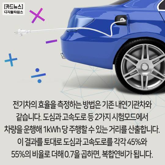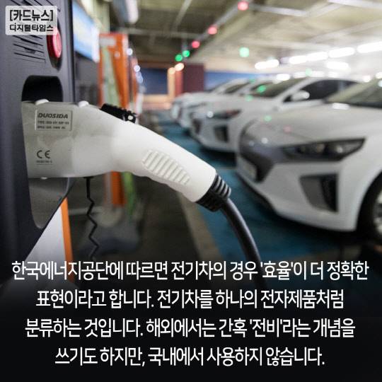 한국에너지공단에 따르면 전기차의 경우 '효율'이 더 정확한 표현이라고 합니다.