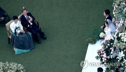 (서울=연합뉴스) 배우 송중기와 송혜교가 31일 오후 서울 중구 신라호텔에서 결혼식을 올리고 있다. 2017.10.31 [사진공동취재단=연합뉴스]