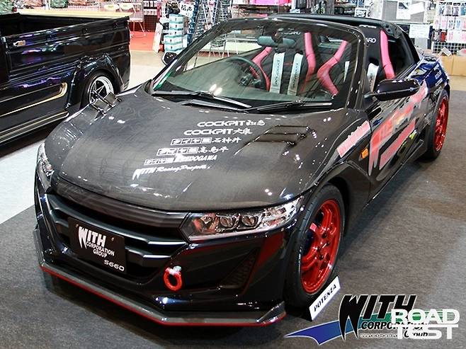 워드 코퍼레이션은 혼다 S660을 고성능 머신으로 개조했다. 에어로 파츠와 대용량 브레이크, 터빈 업을 통해 서킷에서도 즐겁게 달릴 수 있도록 만들었다고. HKS의 GT100R 패키지를 통해 엔진의 최고출력을 105.8마력까지 끌어올렸다. 최대토크는 14.8㎏‧m. 여기에 후지스보(Fujitsubo) 머플러와 1.5 웨이 스포츠 LSD, CFRP(탄소섬유강화플라스틱) 보닛 등으로 업그레이드했다. 레카로 버킷 시트와 하얀 안전띠, 포텐자 RW006 SPL 휠도 눈에 띈다.