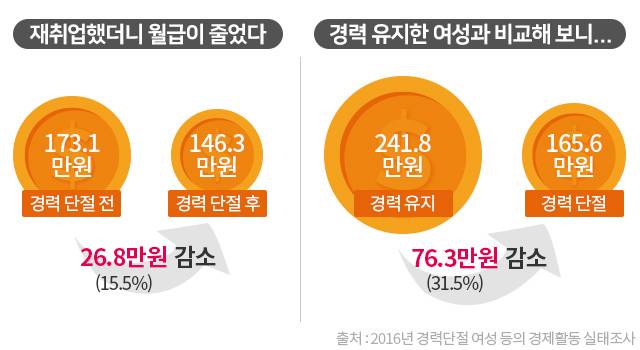 경력 지속한 여성보다 月 76만원 덜 받는다