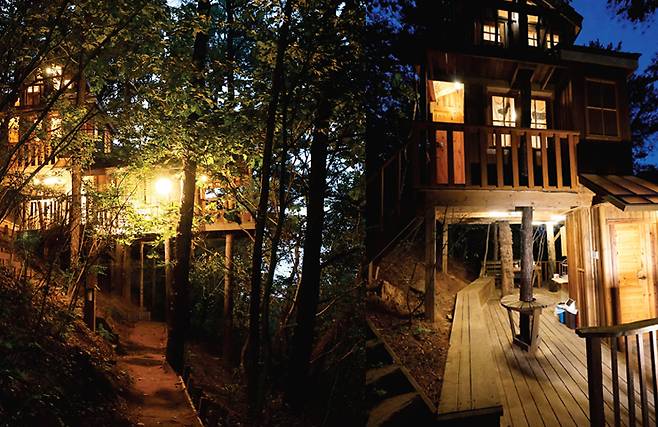 트리하우스에는 톰의 통나무집과 허클의 통나무집이 있다. 허클의 통나무집은 작은 산장 같은 느낌인데 아기자기하고 아늑하다.