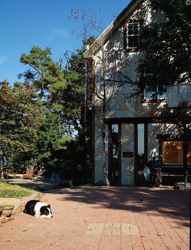 들어선 입구에는 보더콜리 한 마리가 늘어지게 자고 있다. 보더콜리가 누워 있는 곳에는 작은 농구 골대가 있고 카페를 겸하는 건물이 하나 있다. 지금은 사무실로 쓴다고 하여 안타깝게도 커피는 마시지 못했다.