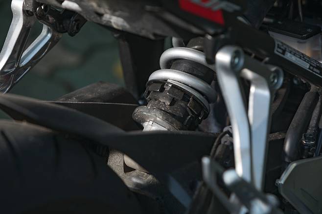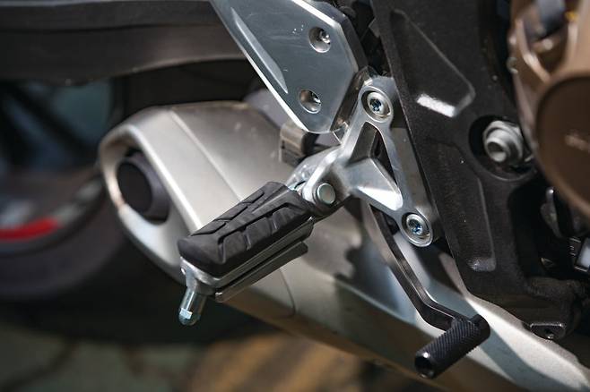시트는 적당히 편안하다. 동승자 일체형 시트는 완만한 굴곡과 폭신한 쿠션을 느낄 수 있다. 반면 디자인 자체는 조금 심심한 편. 시트고는 810mm로 동일 클래스 모델 대비 무난한 수치다. 풋 페그의 위치는 전형적인 미드 컨트롤로 라이딩 포지션을 취했을 때 자연스럽고 풋 레버를 동작할 때에도 편했다.
