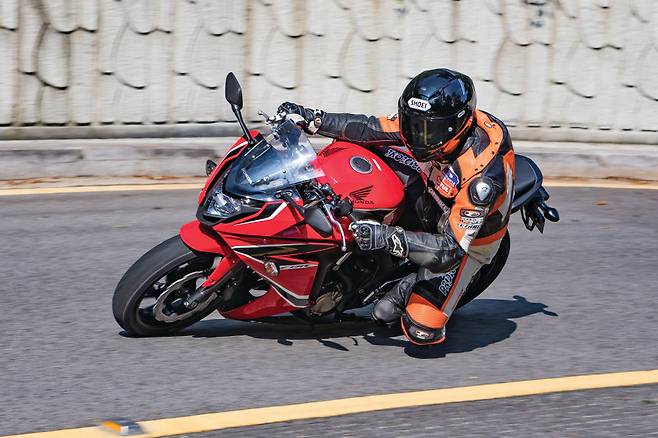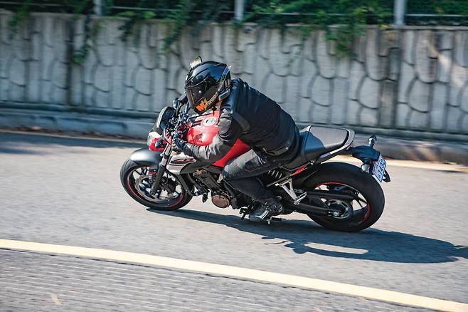 바이크를 다루는 느낌은 무척 좋다. 미들급이지만 바이크를 세우는 동작부터 무게의 부담이 없다. 무게중심이 낮아 실제 무게보다 가볍게 느껴진다. CBR500R과 큰 차이가 없게 느껴질 만큼 쉽게 다룰 수 있다. 엔진의 반응은 부드럽고 신경질적이지 않아 얼마든지 스로틀을 열 수 있다. 기분 좋은 사운드와 경쾌한 회전 감각이다. 어쩐지 요즘 것 같지 않은 느낌도 들지만 역으로 오랫동안 숙성된 엔진이 주는 신뢰감도 있다. 듀얼 밴딩 밸브 시스템이 더해진 서스펜션은 기본적으로 야들야들한 움직임을 보여줘서 그다지 한계가 높지 않아 보였지만 의외로 포용력이 크다. 이러한 요소들이 모여서 정말 기분 좋은 달리기를 만든다. 어지간히 달려서는 피로도 느껴지지 않을 만큼 가볍고 상쾌한 주행감각으로 혼다답게 탄탄한 기본기를 느낄 수 있다.