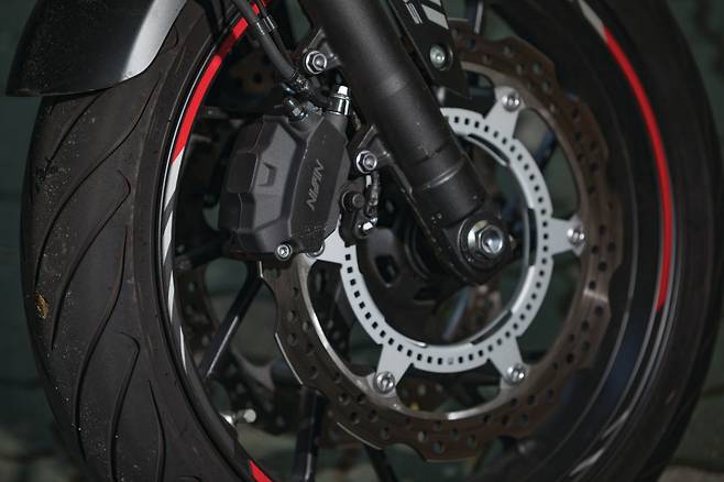 서스펜션은 적당한 움직임으로 안정적으로 노면의 충격을 처리하고, 코너에도 능숙하며 굴곡진 노면에서의 움직임이나 방지턱을 넘어갈 때에도 충격을 원만히 처리한다. 브레이크 시스템은 프런트 320mm 듀얼 웨이브 디스크와 2피스톤 캘리퍼 리어 240mm 싱글 피스톤 캘리퍼 조합으로 2채널 ABS가 기본 사양이다. 답력이 초반에서부터 기민하게 느껴지는 타입이지만 중반부에서는 어느 정도 레버의 압력에 따라 직관적으로 움직인다. ABS의 개입 자체는 다소 빠른 편이지만 완전히 제동 피드백을 주는 것은 제동의 후반부에 밀집된다.