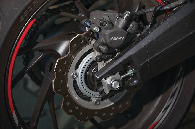 언더슬렁 머플러를 적용해 리어 타이어와 리어 엔드 사이의 공간에 개방감을 주었다. 날렵하게 디자인된 Y자 스포크 휠이 적용된 전후 17인치 휠을 적용하고 휠림에 스티커를 붙인 것도 스포티한 인상을 강조한다. LED 테일라이트와 턴 시그널 램프, 풋 페그 등 다수의 파츠가 기존 혼다 모델에서 봤던 것들로 공유 파츠를 통한 원가절감을 노렸다. 그럼에도 차체 디자인을 흐트러뜨리거나 어느 한 곳이 도드라지는 것 없이 잘 어울리는 점은 마음에 든다.