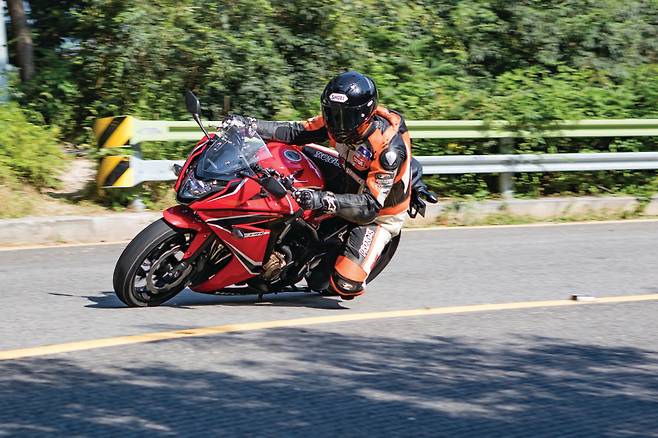 바이크를 다루는 느낌은 무척 좋다. 미들급이지만 바이크를 세우는 동작부터 무게의 부담이 없다. 무게중심이 낮아 실제 무게보다 가볍게 느껴진다. CBR500R과 큰 차이가 없게 느껴질 만큼 쉽게 다룰 수 있다. 엔진의 반응은 부드럽고 신경질적이지 않아 얼마든지 스로틀을 열 수 있다. 기분 좋은 사운드와 경쾌한 회전 감각이다. 어쩐지 요즘 것 같지 않은 느낌도 들지만 역으로 오랫동안 숙성된 엔진이 주는 신뢰감도 있다. 듀얼 밴딩 밸브 시스템이 더해진 서스펜션은 기본적으로 야들야들한 움직임을 보여줘서 그다지 한계가 높지 않아 보였지만 의외로 포용력이 크다. 이러한 요소들이 모여서 정말 기분 좋은 달리기를 만든다. 어지간히 달려서는 피로도 느껴지지 않을 만큼 가볍고 상쾌한 주행감각으로 혼다답게 탄탄한 기본기를 느낄 수 있다.